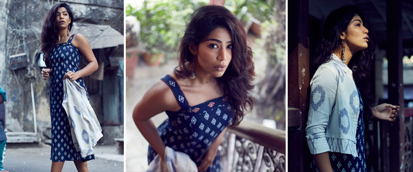 I love the light lacy feel of the top – I have doubled it with a tank top. The light brown cotton printed bottoms are the perfect foil to the top, defining casual style at its best. It’s great for that outdoorsy get together; for a weekend drive-out, away from the hullabaloo of the city.